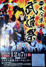 弓道、相撲、空手道、合気道、少林寺拳法、なぎなた、銃剣道、柔道、剣道、居合道、杖道、の各団体の演武、模範試合、練習の紹介などがあります。(演武順)